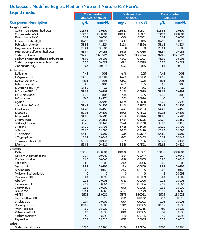 PRODUCTS CNTERDMEM/F12(1:1)液体培养基