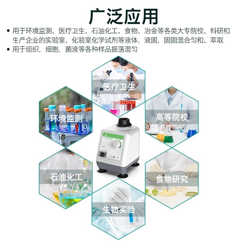 主要对那些化学反应较大、溶液又较少、溶液均匀速度又要快,且只能用于试管、比色管、中小三角瓶的实验,提供了较理想的工具,该仪器不仅解决了搅拌器不能解决的问题,又节省了大量的科研时间,同时使用效果既快又准确.